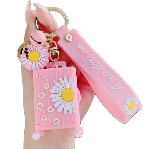 Cute Daisy Mini Suitcase Keychain Bag Accessories Rubber Pvc Car Keychain 3D