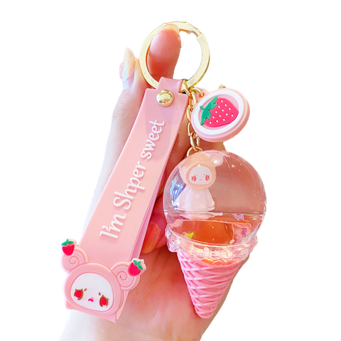 Ice Cream Liquid Keychain Floating Liquid Acrylic Keychain Gift Store Kawaii Girl 50 Zinc Alloy Digital Printing 1pcs/opp Bag